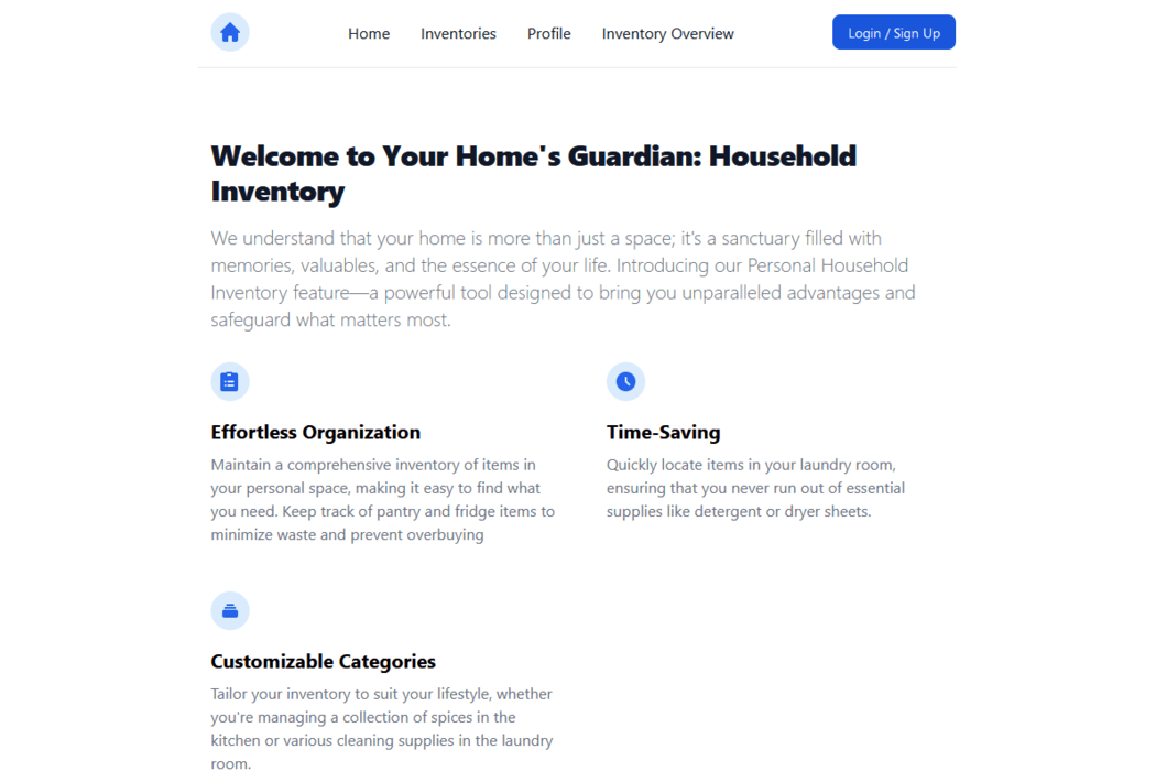 Personal Household Inventory featureβa powerful tool designed to bring you unparalleled advantages and safeguard what matters most. A Bootcamp Project.